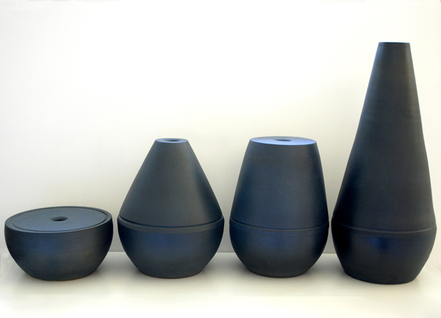 Ovnis. Barro rojo y esmalte. 1020ºC. Seleccionadas en el concurso de cerámica de Majadahonda 2009.Dimensiones:120x45x25cm. 2008