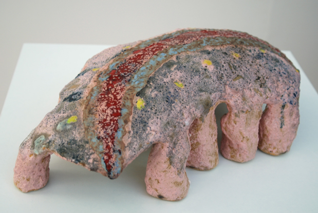 Criatura Rosa de la serie Sin pies ni cabeza. Refractario y esmaltes. 1250ºC. Dimensiones: 41x30x18cm. 2010