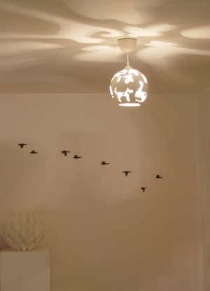 LAMPARone Animales. Lámpara de techo. Loza por colada, agujeritos y esmalte. 980ºC. Dimensiones: 20x20x18cm.2010