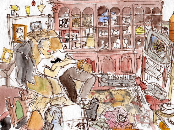 La Barriga y yo en casa de su madre. Acuarela. Dimensiones:21x15cm. 2008