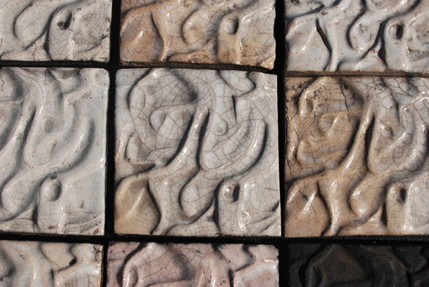 Detalle En esta selva infinita solo me faltas tú. Mural mosaico. Raku. Seleccionado en el concurso de cerámica de castellón 2009